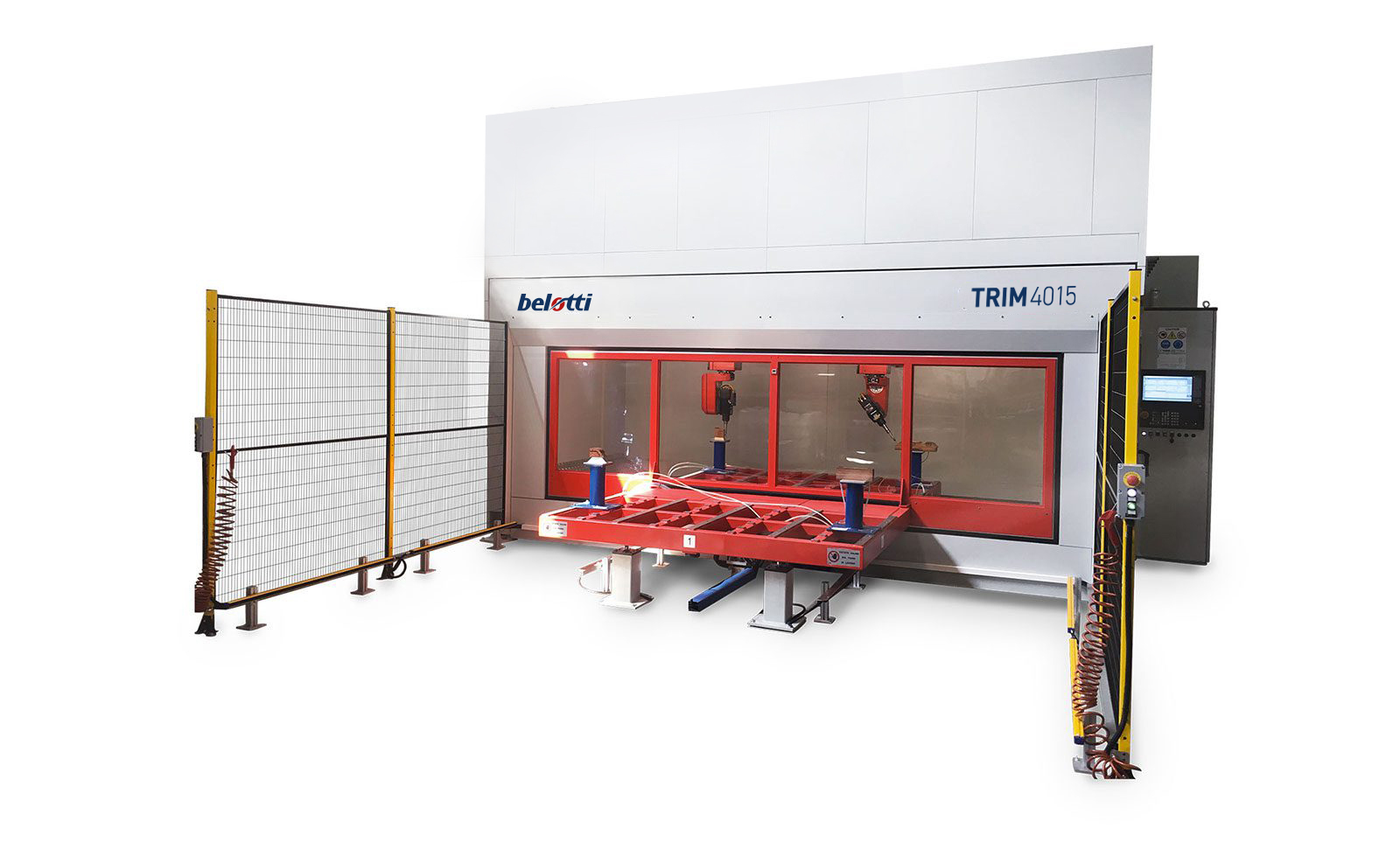 The transparent automatic door, moving vertically, shifts according to the platform movements. Each table is accessible on at least two sides, to make part loading/offloading easier.