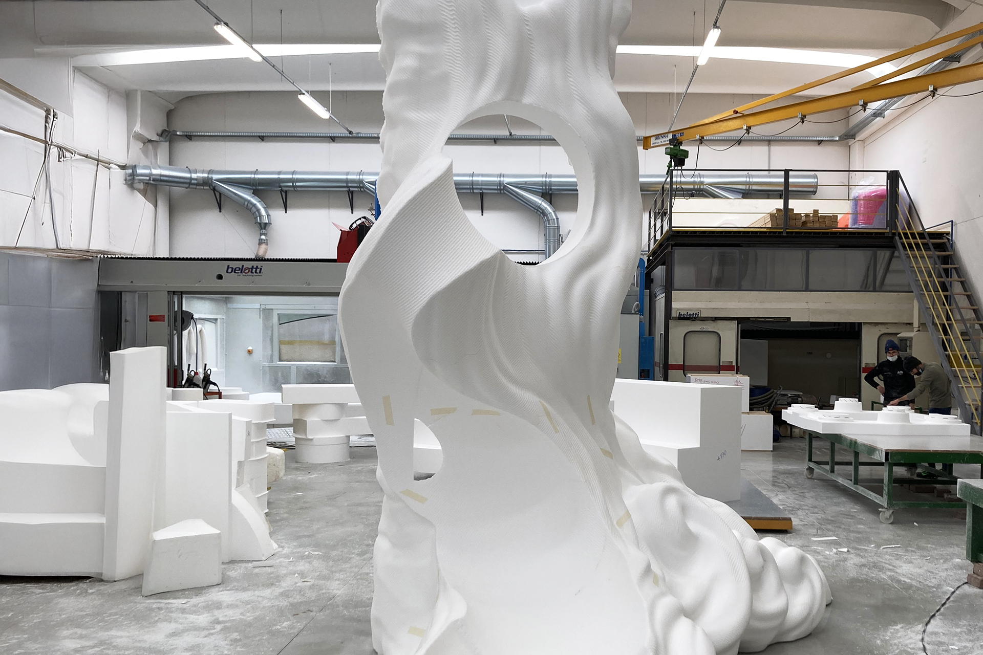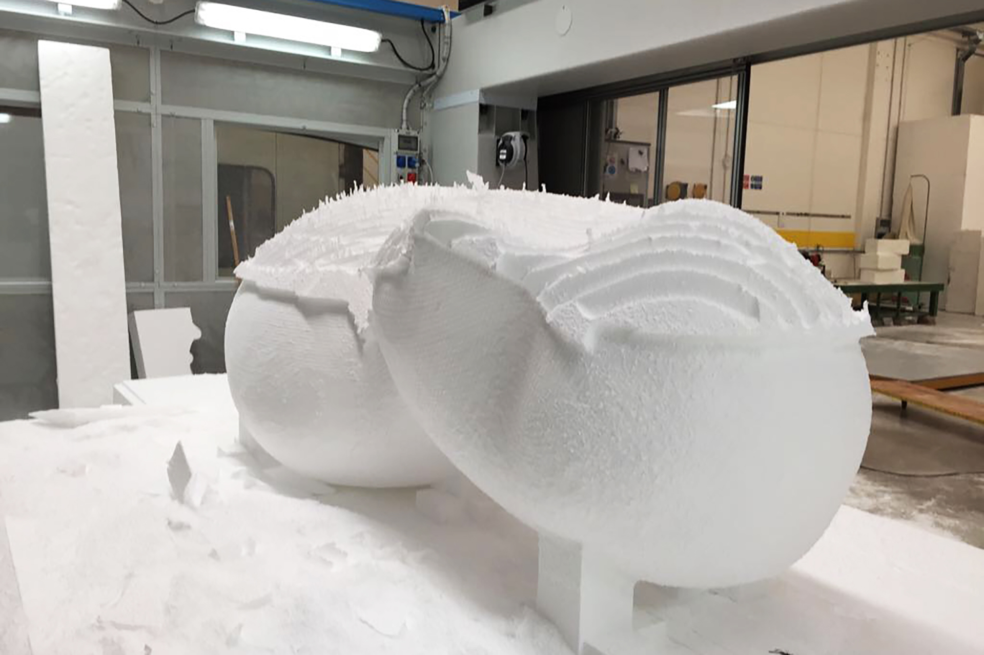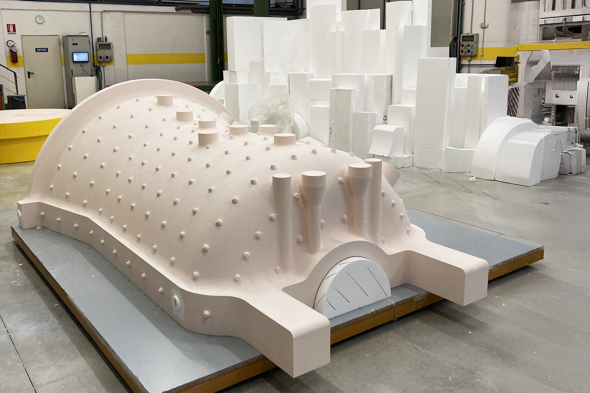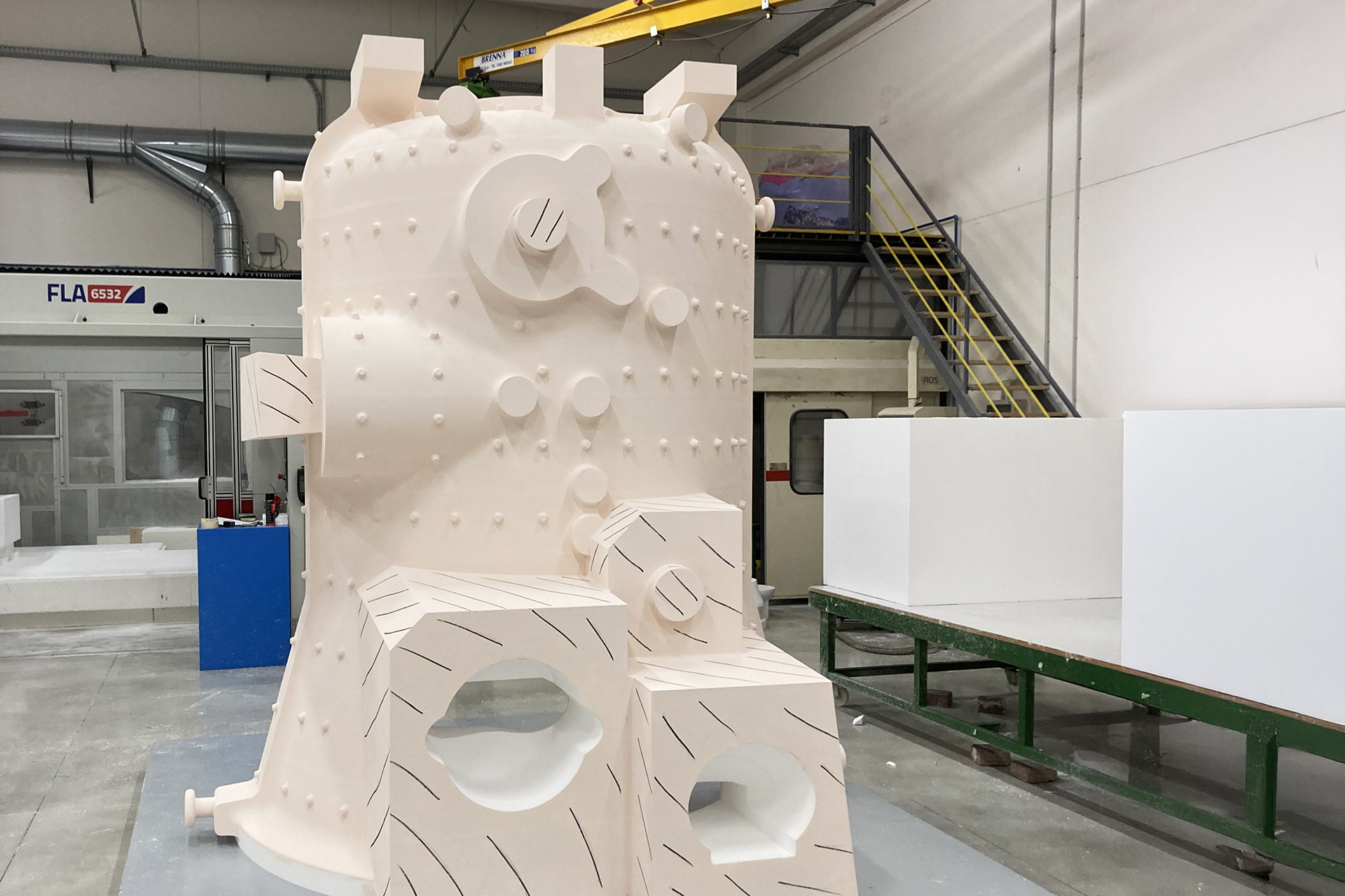 By combining artisanal craftsmanship, automation, and technological precision—achieved through CAD/CAM programming—the company has specialized in the manufacturing of polystyrene foundry patterns, with or without core boxes, for a wide range of industrial sectors such as mechanics, energy, marine, and automotive, as well as the creation of highly evocative scenic installations for designers, exhibition setups, and theatrical and cinematic productions.