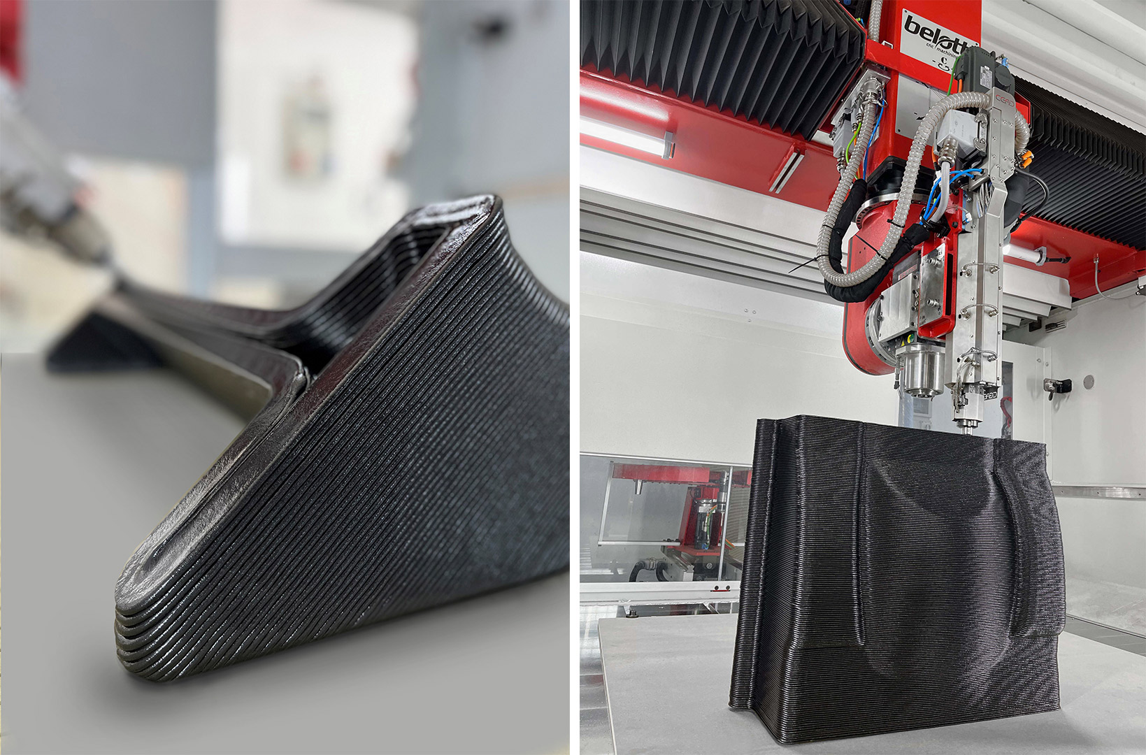 Le processus d’impression 3D utilise des granulés de matériaux composites, constitués d’une matrice de polymère thermoplastique renforcée par différents types de fibres, du verre au carbone en passant par les fibres naturelles. Les matériaux utilisables vont des plastiques de base (PP, PETG…) aux polymères haute performance (PESU, PEEK…) ; en outre, la nature thermoplastique de la matrice, par rapport aux polymères thermodurcissables, permet sa récupération et sa réutilisation, ce qui rend le processus de production encore plus durable, non seulement en termes de coûts, mais aussi du point de vue de l’environnement.