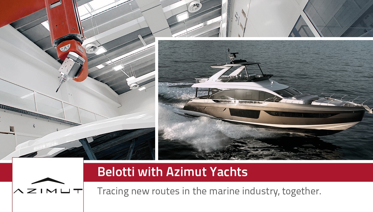 Driven by the same passion for their products, for new technologies and for cutting-edge manufacturing processes, Belotti and Azimut Yachts have recently renewed a partnership agreement that will see the former committed to providing solutions to support the production development of the latter, which has always been based on innovation and high-quality standards.