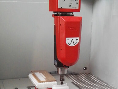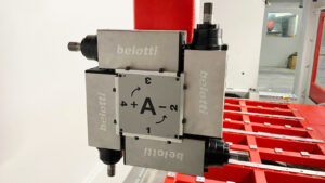 La tête à deux sorties est équipée d’une électrobroche à deux sorties et à vitesse variable : elle permet l’utilisation de deux outils de diamètres différents et un changement d’outil extrêmement rapide en cours d’usinage.