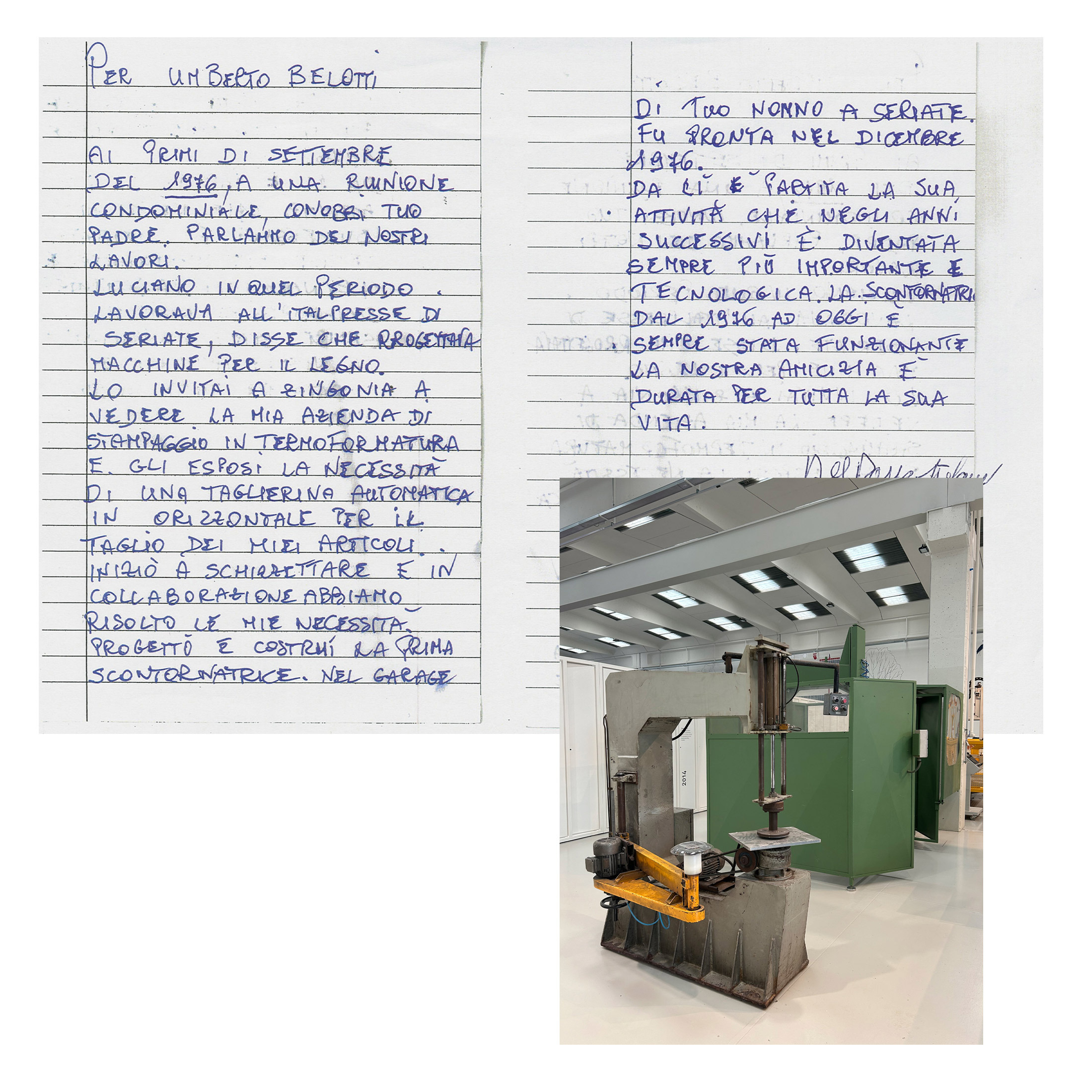Ing. Belotti conçoit et construit, dans le garage de son père, la première machine pour le détourage des thermoformés , commandée pendant une réunion d’immeuble.