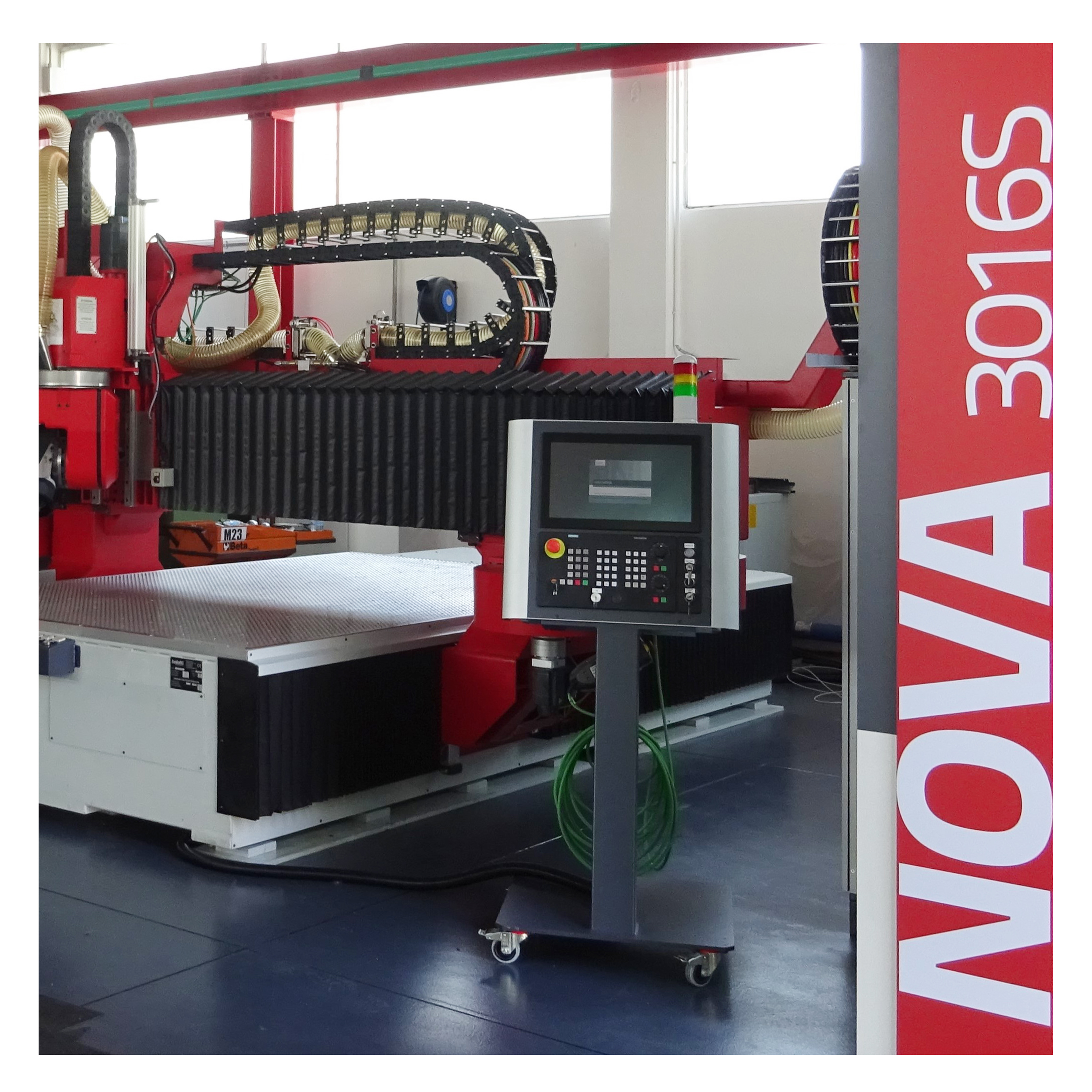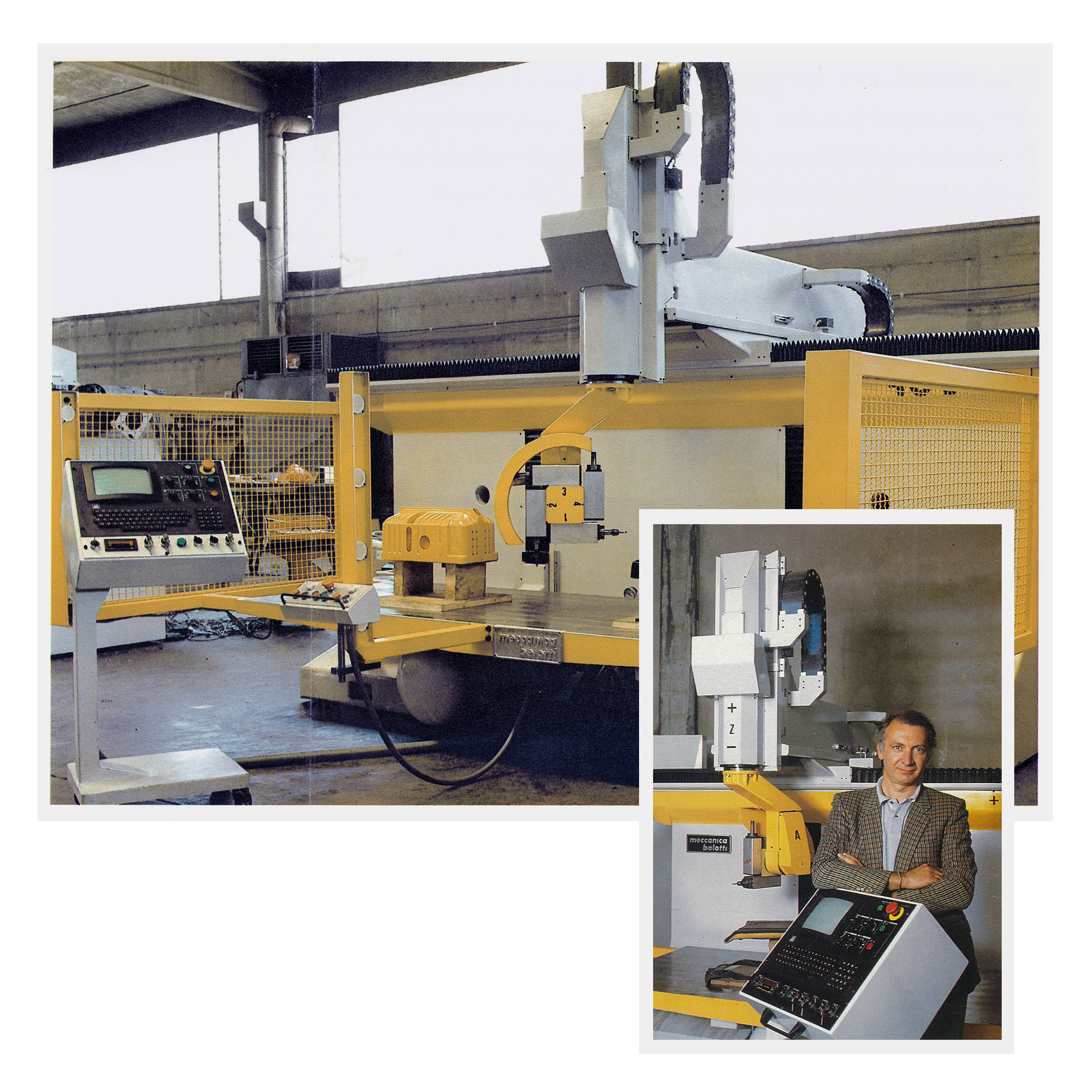 Le département R&D conçoit le premier centre CNC 3 axes pour le fraisage et le profilage de composants en aluminium, en plastiques techniques et en matériau composite à partir de grandes plaques.
