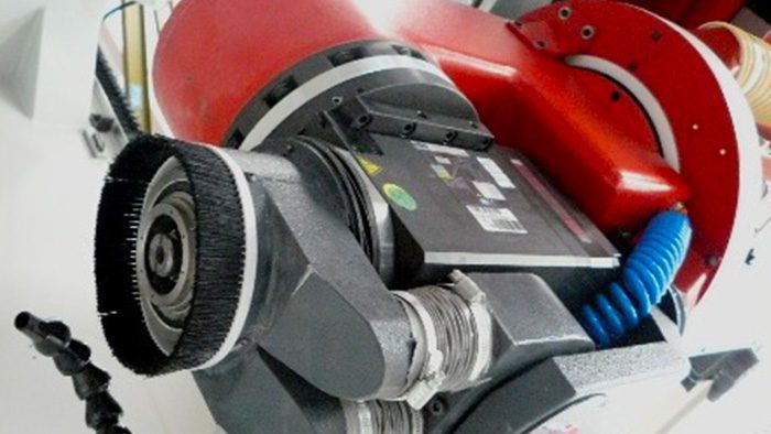 Cuffia di aspirazione polveri nelle lavorazioni a 5 assi con funzione di controllo elettronico.